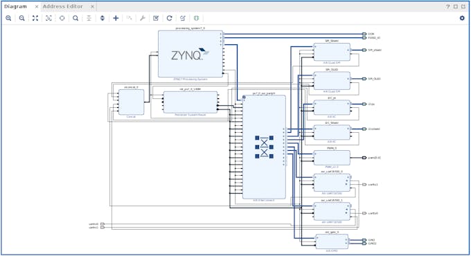The ArtyZ7-20 contains a Xilinx Zynq chip which contains a 650Mhz ARM dual-core processor as well as some FPGA fabric. An FPGA design can be instantiated using Xilinx Vivado. Additionally, using Xilinx Petalinux, a Linux kernel and root file-system can be obtained for the ARM processor. This allows us to run the Linux operating system, but still use the functionality of the FPGA. FPGA configurations can be loaded and changed dynamically without interrupting or crashing the running kernel.