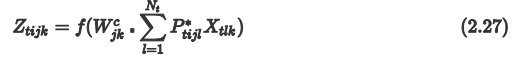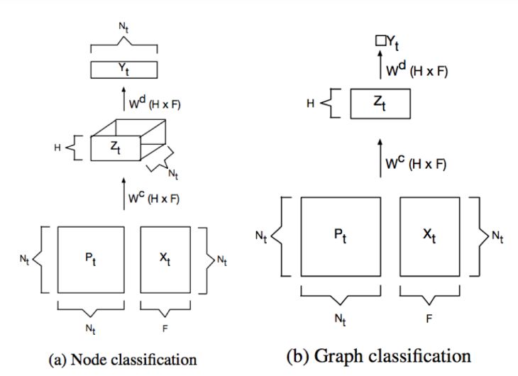 Consider t-th graph has a node l with k-th feature as $x_{t,l,k}$ and $p_{t,i,j,l}$ is the probability of transiting from $i-th$ node to $l-th$ node in $l$ hoops, the convolution can be computed as: